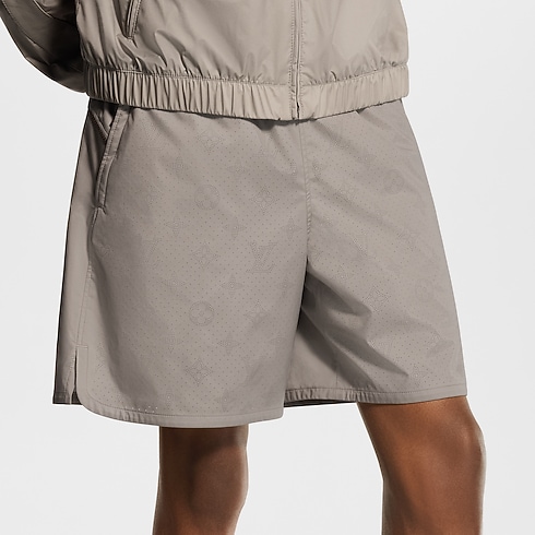 스포츠웨어에서 영감을 받은 테크니컬 립스톱 소재의 웜업 쇼츠. 편안함과 시대를 초월하는 우아함을 겸비해 여유로운 여름 스타일을 선사하는 디자인. 앞면 패널의 타공 처리한 모노그램 모티프가 섬세한 시그니처 포인트를 더하며, 따뜻한 날에도 쾌적하게 착용할 수 있는 쇼츠. 뒷면 요크 부분에 그래픽한 포인트가 되어주는 마이크로 다미에 디테일. 매칭되는 가죽 나일론 트랙 톱과 함께 세련된 세트 룩을 연출할 수 있는 아이템.