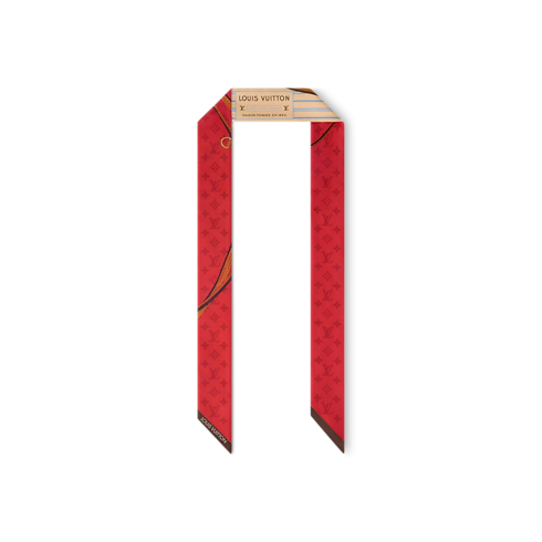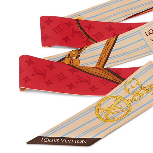 상징적인 네버풀 핸드백에서 영감을 받은 퓨어 실크 소재의 마이 네버풀 BB 방도. 하우스의 러기지 제작 헤리티지에 오마주를 바치는 디자인. 네버풀 핸드백의 스트라이프 캔버스 안감을 연상시키는 대담하고 그래픽한 패턴. 유서 깊은 '아티클 드 보야주' 패치를 묘사한 일러스트로 포인트를 더한 스타일. 하우스 고유의 감성을 한층 강조하는 LV 서클 및 모노그램 플라워 엠블럼.