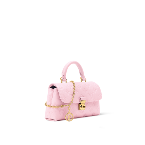 하우스의 세련된 컨페티 핑크 색조로 선보이는 여성스러운 나노 마들렌. 시그니처 모노그램 앙프렝뜨 가죽 소재. 골드 색상의 S락과 LV 서클 참이 장식된 매칭되는 체인으로 포인트를 준 디자인. 데일리 필수품을 휴대할 수 있으며 다양한 방식으로 연출할 수 있는 활용도 높은 아이템.