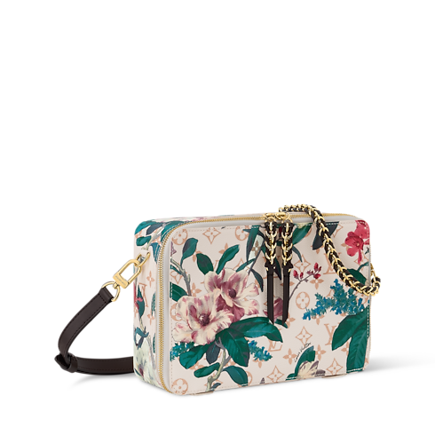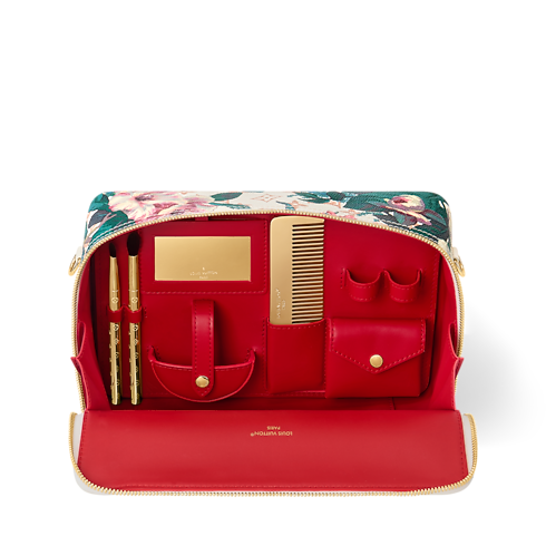 모노그램 에덴 애니메이션 컬렉션의 네세세르(Nécessaire) 백. 생기 넘치는 플로럴 패턴으로 아름답게 장식된 모노그램 듄 캔버스 소재로 선보이는 우아한 다기능 디자인. 카우하이드 트리밍. 강렬한 레드 색상의 안감. 스마트폰과 화장품을 넣을 수 있는 일곱 개의 포켓. 두 개의 브러시, 빗 및 거울이 포함되어 있으며 아이섀도우와 두 개의 립스틱을 추가할 수 있는 아이템. 감각적인 매력을 선사하는 골드 색상의 하드웨어.