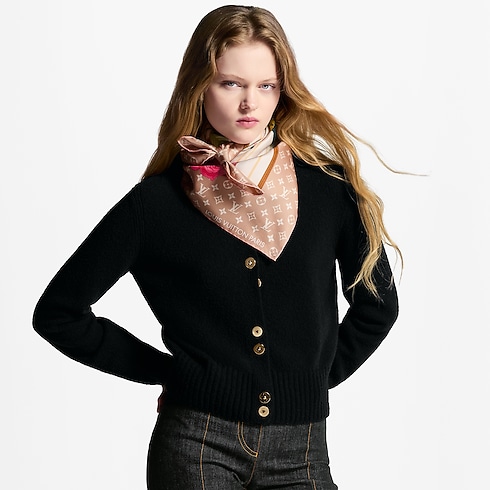 밸런타인 데이에서 영감을 받은 네버풀 오브 러브 스퀘어. 클래식한 마이 네버풀 디자인을 배경으로 한 사랑 이야기를 담은 디자인. 퓨어 실크 소재. 핸드백 스트랩과 꽃, 러브레터 등 여성스러운 상징을 결합하여 완성한 매혹적인 패턴. 모노그램 가장자리와 빈티지한 트렁크 패치가 은은하게 하우스의 헤리티지를 선사하는 특별한 액세서리.