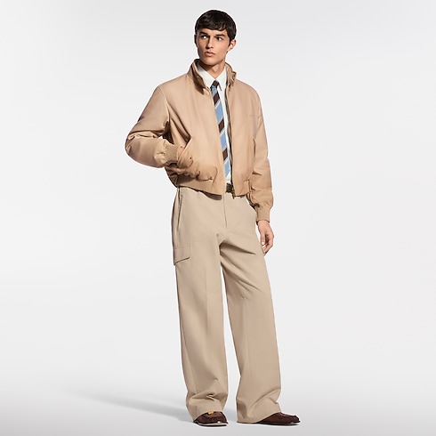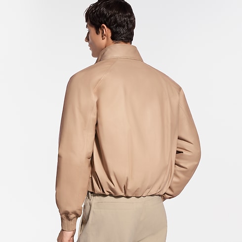 2026 봄-여름 패션쇼에서 고급스럽고 유연한 카프스킨 소재로 선보인 블루종. 가볍게 패딩 처리해 부드럽게 둥근 곡선을 그리는 실루엣을 구현한 디자인. 현대적인 크롭 핏. 가죽 소재의 리브드 디테일을 더한 소맷단과 허리 부분. 골드 색상으로 스탬핑 처리한 루이 비통 파리 레터링이 장식된 가슴 부분. 자연스럽게 태닝된 카멜 색조가 특징인 시대를 초월하는 활용도 높은 아이템.