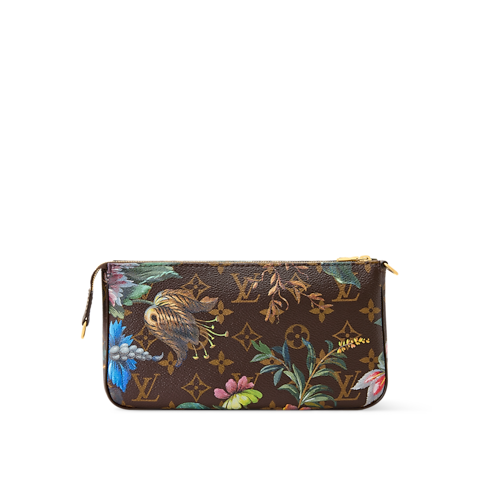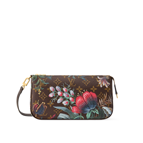 모노그램 에덴 컬렉션에서 선보이는 화려함과 세련된 매력이 조화를 이룬 포쉐트 악세수아. 독특한 플로럴 모티프가 돋보이는 디자인. 상징적인 모노그램 캔버스 소재의 컴팩트한 아이템. 부드러운 카우하이드 소재의 트리밍과 세련된 골드 색상 하드웨어. 일상의 필수품을 보관할 수 있는 대형 수납공간과 여러 장의 카드 또는 지폐를 정리할 수 있는 플랫 포켓을 갖춘 내부.