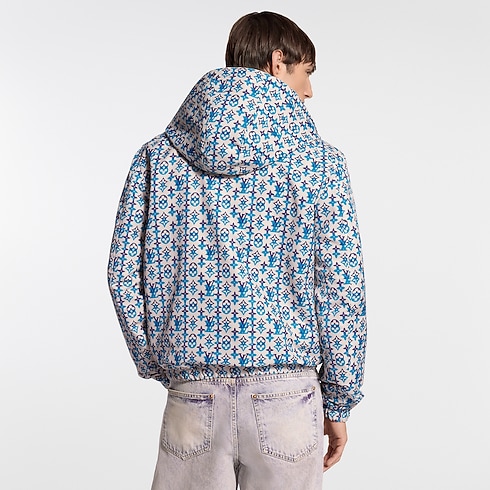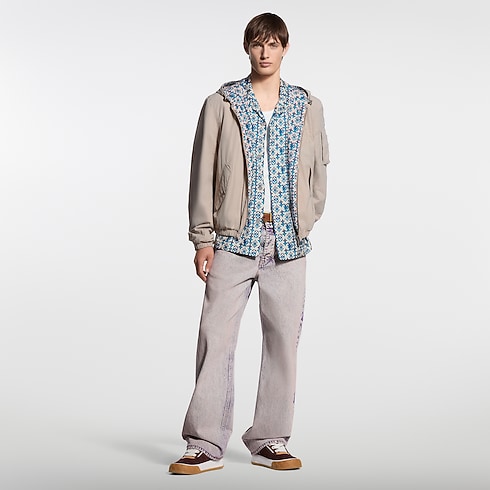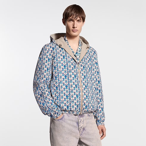 시대를 초월하는 베이지 색상의 외관을 구현해 믹스매치하기 좋은 리버서블 윈드브레이커. 가슴 부분에 수놓은 톤온톤 시그니처. 인도의 유서 깊은 장인정신에서 영감을 받아 생기 넘치는 터콰이즈 및 퍼플 색조로 완성한 2026 봄-여름 패션쇼의 그래픽한 모노그램 오버랩 모티프가 돋보이는 반대쪽 면. 다양하게 스타일링할 수 있는 테크니컬하고 활용도 높은 아이템.