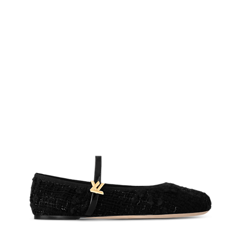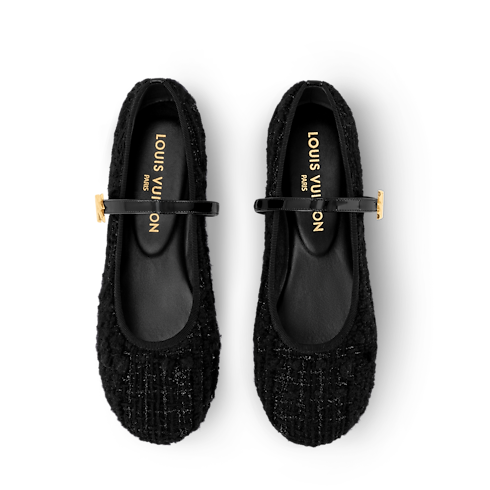 2025 루이 비통 크루즈 패션쇼의 주요 테마인 트위드 소재로 재해석한 로미 플랫 발레리나. 라운드 토 및 가느다란 가죽 스트랩이 특징인 클래식한 발레 펌프스. 하우스 고유의 감성을 전하는 골드 색조의 LV 트위스트 액세서리. 고급스러운 가죽 소재의 겉창.