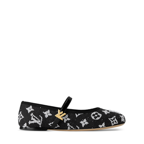 루이 비통 모노그램 패턴을 직조한 트위드 소재로 꾸뛰르 감성을 선사하는 로미 플랫 발레리나. 골드 색상의 LV 트위스트 액세서리가 장식된 페이턴트 가죽 소재의 가느다란 발등 스트랩. 고급스러운 가죽 겉창을 갖춘 클래식한 라운드 토 발레 펌프스.