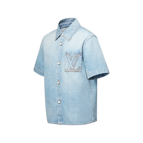 루이 비통의 노하우가 엿보이는 옷장 속 필수 아이템 반소매 데님 셔츠. 스톤 워싱 처리한 프리미엄 재패니즈 데님 소재. 토바코 색상의 장식적 스티칭, 가슴 포켓의 LV 시그니처 자수, 뒷면의 누벅 LV 패치 및 진주 효과를 더한 버튼이 특징. 데일리 룩에 믹스매치하기 좋은 꾸미지 않은 듯 스타일리시한 아이템.