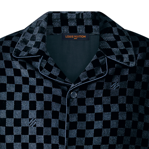 편안한 파자마 실루엣으로 꾸미지 않은 듯 우아한 아름다움을 자아내는 유려한 셔츠. 광택이 있는 실크 혼방 벨벳 자카드 소재로 제작하여 이브닝 룩에 어울리는 아이템. 다미에 모티프와 Marque L.Vuitton Déposée 시그니처를 결합하여 메종의 유서 깊은 시그니처를 현대적으로 재해석한 디자인. 매칭되는 드로스트링 팬츠와 함께 세련된 세트 룩을 연출할 수 있는 스타일.