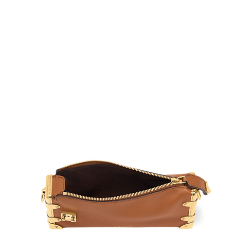 위건 컬렉션에서 선보이는 현대적인 감각의 슬림 트렁크. 활용도 높은 색상을 입힌 카프스킨 소재. 하우스의 유서 깊은 여행 헤리티지를 기념하는 트렁크에서 영감을 받은 모서리와 시그니처 S-락 등 골드 색상 하드웨어. 매칭되는 탈착형 체인을 더한 아이템.