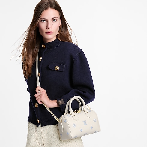 이번 시즌을 맞아 거의 모든 룩과 조화를 이루는 세련된 바이컬러 색감으로 재해석해 선보이는 스피디 반둘리에 20(Speedy Bandoulière 20). 시그니처 모노그램 앙프렝뜨 가죽 소재. 아카이브 루이 비통 러기지에 찬사를 보내는 장식적인 참과 네임 택. 데일리 필수품을 모두 담을 수 있는 크기. 크로스 바디 스타일로 연출 가능하며 한쪽 어깨에 걸치거나 손에 들 수도 있어 활용도가 높은 아이템.
