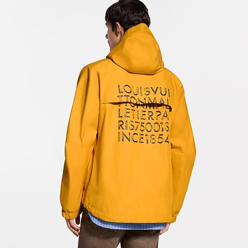 이번 시즌의 세련된 등산 테마에서 영감을 받은 2026 봄-여름 패션쇼의 테크니컬 파카. 생기 넘치는 옐로우 색상의 립스톱 패브릭. 가슴 부분의 골드 색상 루이 비통 파리 레터링. 뒷면에 그래픽한 포인트를 더하는 대형 LV 알파벳 모티프 프린트.