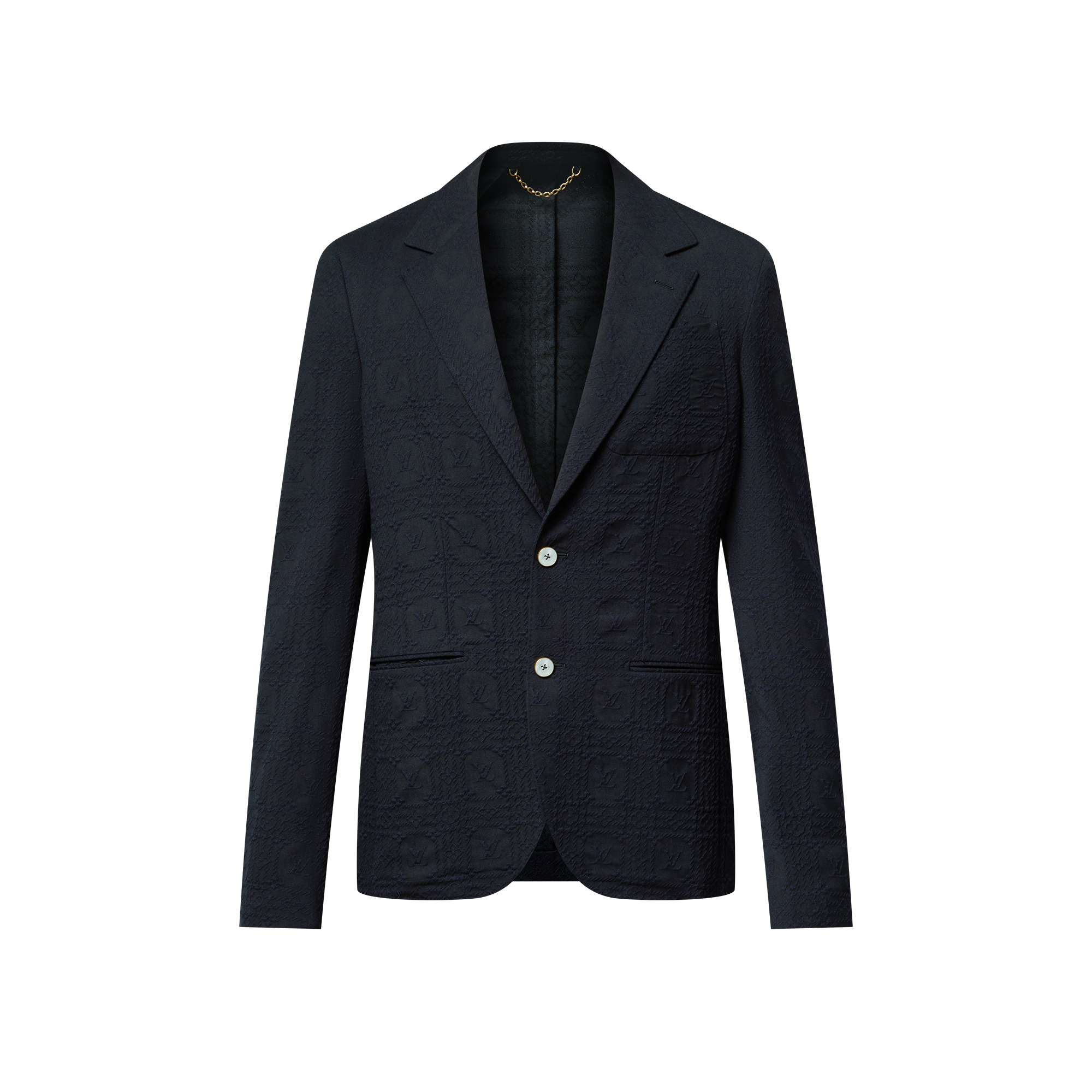 여름용 울 소재에 질감을 살린 LV 모노그램 프린스 오브 웨일스 모티프를 입힌 우아한 다크 네이비 색상의 테일러드 팬츠. 왼쪽 벨트 루프에 골드 색상의 각인된 LV 참을 장식하고 허리 뒤쪽에 Marque L.Vuitton Déposée 라벨로 시그니처 감성을 더한 디자인. 수트로도 활용할 수 있어 여름철 룩에 한층 세련된 매력을 선사해줄 아이템.