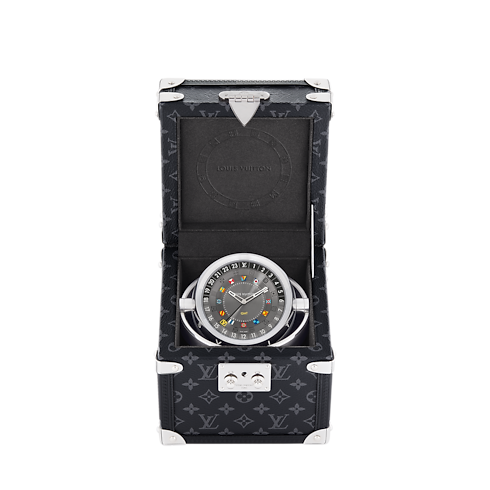 개인적인 선물 또는 비즈니스 파트너를 위한 선물로 이상적인 고급스러운 테이블 클락. 전통적인 기능성과 루이 비통의 전설적인 여행 예술을 결합한 디자인. 하우스의 가장 아이코닉한 아이템인 트렁크(trunk)를 열면 최고의 보물인 시간이 드러나는 구조. 심플하면서도 세련된 매력을 선사하는 상징적인 모노그램 이클립스 캔버스 소재. 깊이를 더해주는 오목한 듀얼타임 다이얼. 현지 시간과 모국 시간을 한눈에 확인할 수 있는 24시간 디스플레이 및 GMT 지표. 지난날의 여행자 트렁크(trunk)를 연상시키는 선명한 색상의 플래그 12개.