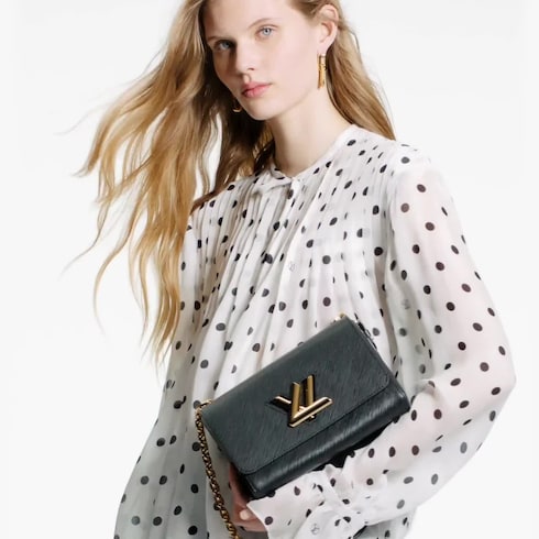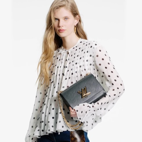 하우스를 상징하는 에피 가죽 소재의 트위스트 MM(Twist MM) 체인 백. 아이코닉한 시그니처로 새롭게 자리 잡은 반짝이는 골드 색상 금속 소재의 조형적인 LV 트위스트 락이 특징. 보기보다 넓은 수납공간을 제공하는 기발한 물결 모양의 바닥. 데이 룩과 이브닝 룩 어디에나 어울리도록 아름답게 디자인된 스타일리시한 아이템. 슬라이딩 체인 스트랩을 두 줄로 겹쳐 숄더 백으로 연출하거나 길게 늘여 크로스 바디 백으로 착용 가능. 2015 크루즈 쇼에서 처음 선보인 이후 하우스의 새로운 클래식으로 자리매김한 트위스트 백.