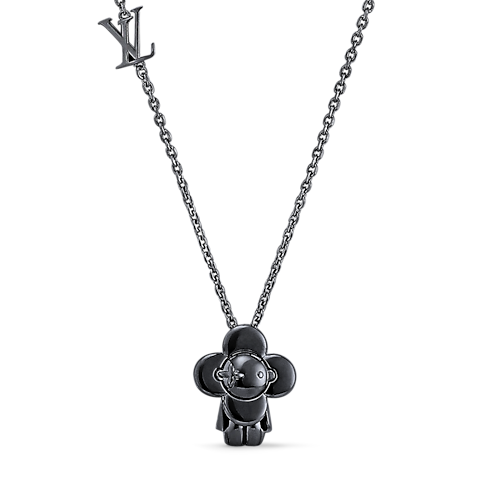 2022 가을-겨울 컬렉션을 맞아 다크 루테늄 색상으로 모던하게 재해석하여 선보이는 비비엔 펜던트. 많은 사랑을 받는 하우스 캐릭터를 미니어처 버전의 폴리싱 처리한 금속 펜던트로 구현한 젊은 감성의 액세서리. 체인에 연결된 LV 이니셜 참.