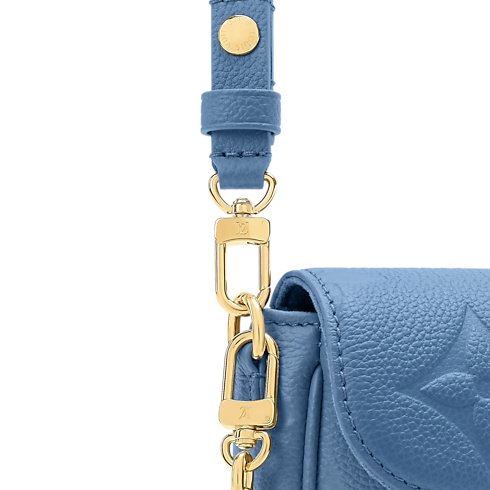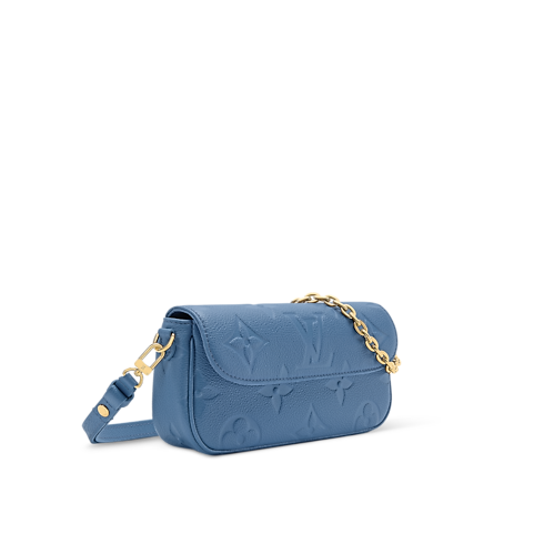 모노그램 앙프렝뜨 컬렉션에서 현대적인 블루 데님 색조로 재해석한 월릿 온 체인 아이비. 카우하이드 소재. 골드 색상의 탈착형 시그니처 체인 장식. 일상 필수품을 보관할 수 있는 다수의 포켓과 수납공간, 세 개의 카드 슬롯을 갖춘 내부.
