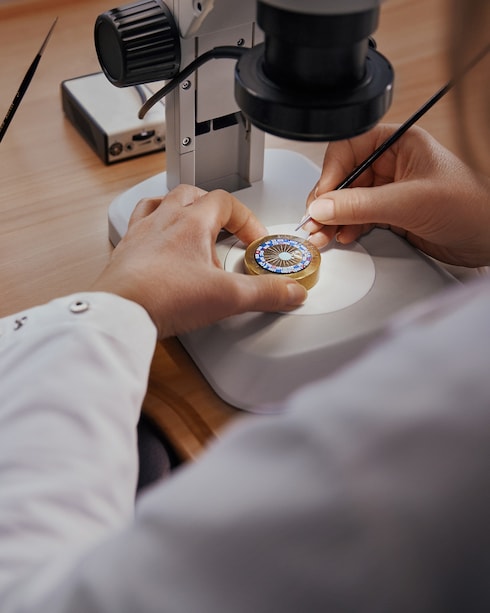 독보적인 숙련도와 정교함을 보여주는 미니어처 페인팅 작업은, 한 올의 두께가 10밀리미터도 채 되지 않는 붓을 완벽하게 숙달한 장인의 손길을 통해, 다이얼의 섬세한 화면을 더욱 돋보이게 합니다. 장인은 가장 표현력이 뛰어난 컬러 팔레트를 선택함으로써 타의 추종을 불허하는 끈기와 디테일에 대한 집중력을 바탕으로, 고도로 창의적인 비전의 모든 뉘앙스를 구현합니다.