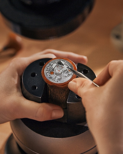 인그레이빙은 숙련된 장인의 손에서 탄생하는 예술적 표현의 한 형태로, 섬세한 선과 비율, 양감과 미묘한 음영을 지닌 형태를 통해 다이얼, 케이스, 무브먼트 부품의 디테일에 생동감과 깊이를 부여합니다. 금속을 조각해 이 전통 기법에 필요한 정교한 디테일을 구현하기 위해, 장인은 끌과 같은 다양한 도구를 사용합니다. 정교하게 새겨진 모티프는 시대를 초월한 예술 작품이 되어 장인의 전통과 워치메이킹 세계의 창의적인 미학이 이루어내는 미묘한 조화를 보여줍니다.