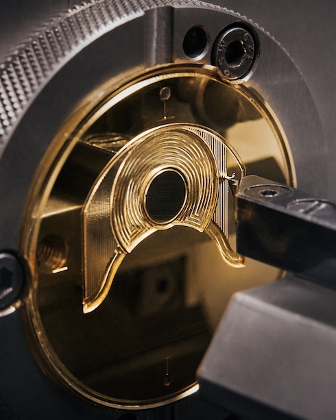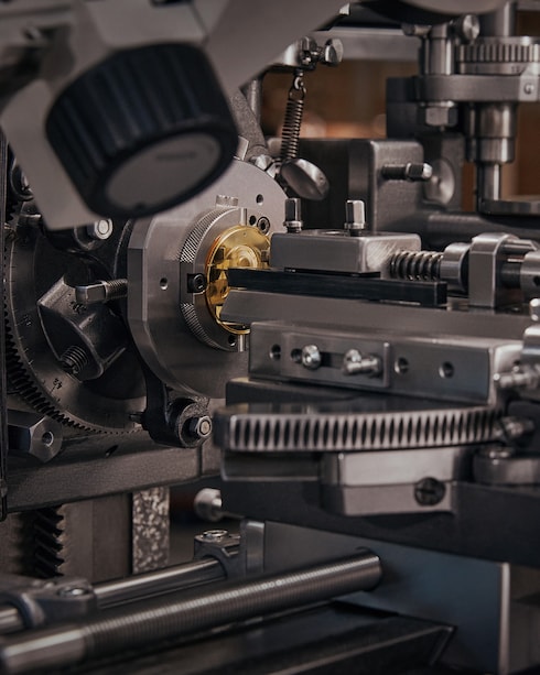 금속에 장식 문양을 새기는 전통 기법 기요셰(guilloché)는 손과 기계의 완벽한 조화를 보여줍니다. 기요셰 장인은 고도의 기술로 기계를 다룸으로써, 비교할 수 없는 정교함과 규칙성을 지닌 선형 또는 기하학적 패턴을 만들어내며, 이를 통해 미묘한 빛의 유희를 만들어냅니다. 이렇듯 독특하게 양식화된 기하학적 포인트는 제작 공방이 구현하는 세련된 워치메이킹 기술의 진수를 보여줍니다.