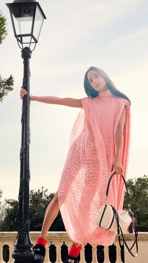 삶의 예술에 대한 찬가로, 니콜라 제스키에르의 2026 봄–여름 여성 컬렉션은 하우스 앰버서더 제니퍼 코넬리와 함께 유려하고 우아한 의상들을 선보입니다.