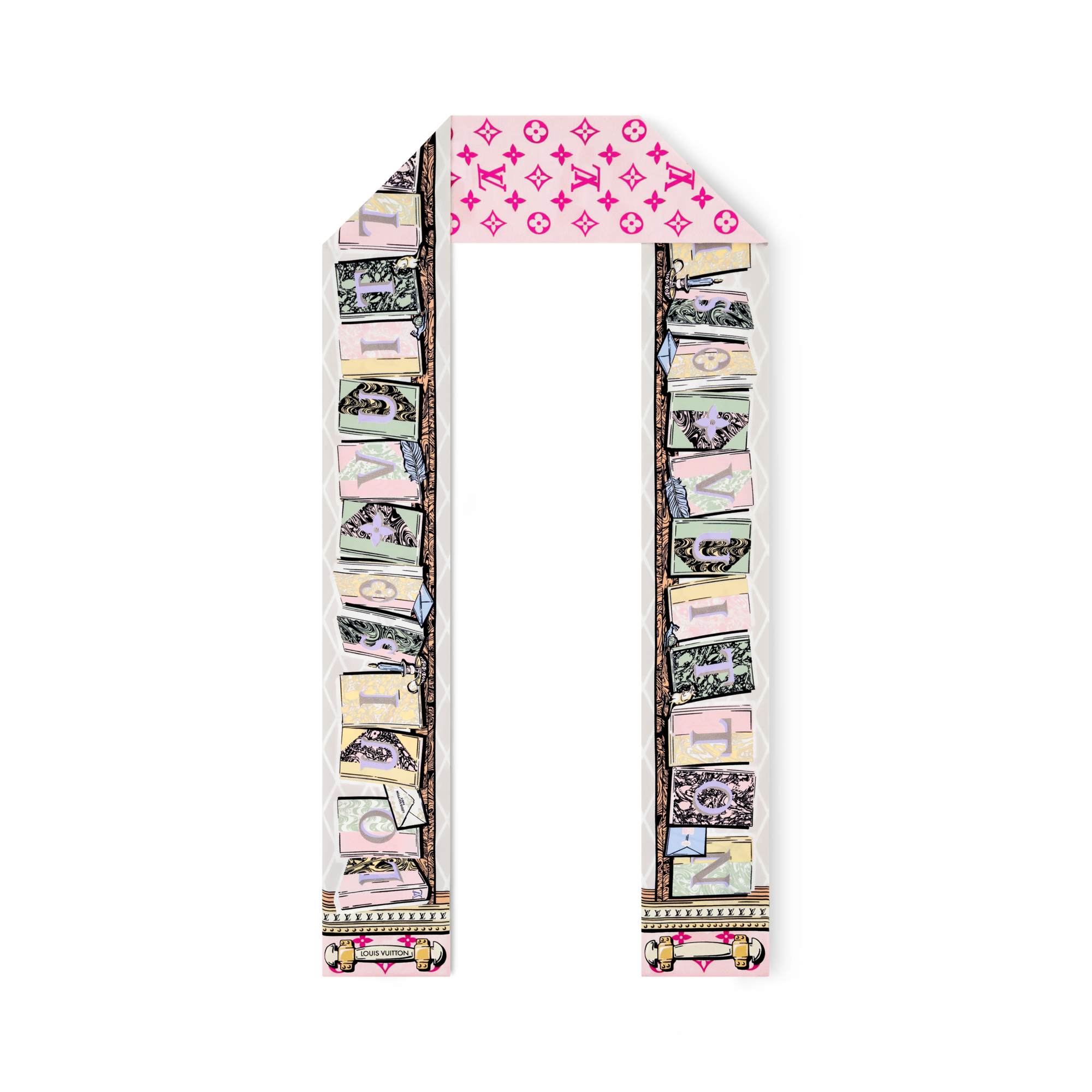 루이 비통이 제안하는 가장 인기있는 여성 액세서리, 실크 스퀘어 & 방도는 전통적인 장인정신과 현대적 아티스틱 비전이 조화를 이룹니다. 모노그램 패턴과 독특한 모티프를 담아낸 고급스러운 퓨어 실크 소재로 완성한 디자인이 특징입니다. 하우스의 클래식한 스타일부터 매 시즌 새롭게 선보이는 독창적인 스타일까지 폭넓게 구성한 명품 방도, 스카프 컬렉션으로, 다양한 매듭법과 스타일링을 통해 목에 둘러 클래식한 룩을 연출하거나 헤어밴드, 가방 액세서리, 벨트로 활용하여 개성 있는 포인트를 만들 수 있습니다. 루이 비통의 명품 실크 스카프는 스타일리시하고 활용도가 높은 액세서리로 선물은 물론 소장용으로도 가치있는 루이 비통 액세서리입니다.